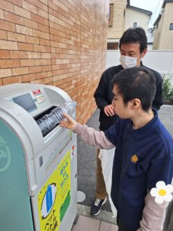 外に出かけてペットボトルのリサイクルも