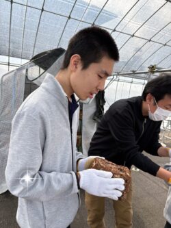 ビニールハウス内で作業をしたり