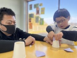 そこから色画用紙をカップの底に沿って貼っていきます👐