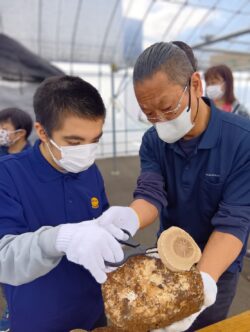 皆さん一生懸命にお世話しておりますので菌床も頑張ってポツポツとですが椎茸を生やしてくれます🍄