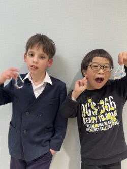 ビーズや貝がらを通して、ブレスレットを作りました🧿