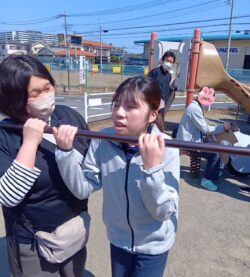 ウォーキングは途中遊具で身体を動かしました。暖かくとても気持ちの良い日でした。