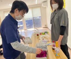 皆さん色々用意された材料からビーズやモールなど自由に選んでいきます。