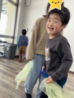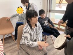 しっかりと椅子に座って楽器遊びを楽しみます😉