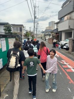 スタッフと一緒に、みんなで歩いて向かいます♪