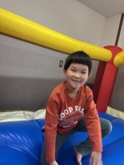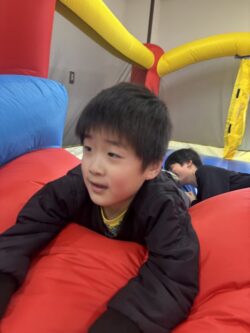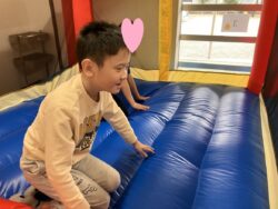 本日は、バウンサーという空気を膨らませて、飛んだり跳ねたりして遊ぶものに挑戦してもらいました❕💕