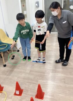飛び石や輪投げ、射的などいろいろなコーナーを順番に回りながら体を動かしました😁