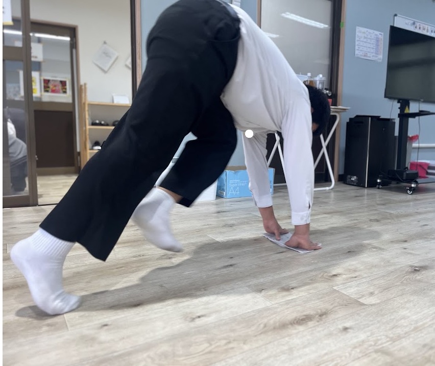 画面の先生の動きをマネしながら、ゆっくりと呼吸を整えて身体をほぐしていきます🧘♀️