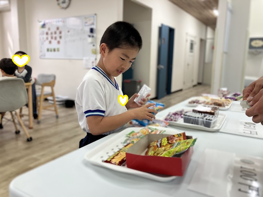 10円・50円・100円のお金を財布にいれて、自分の好きな駄菓子を買いに行きました🧺🍭