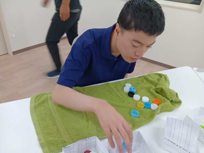 ペットボトルキャップの色分け作業🎵