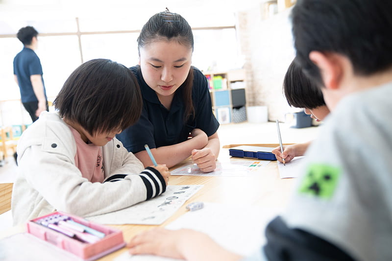 一人ひとりの特性に合わせた個別課題にも力を注いでいます。宿題や学習プログラムなどはもちろん、個別支援計画にもとづいた様々な課題を専門スタッフがサポートしながら毎日実施。一歩進んだかと思えば二歩下がることもありますが、どんな日も成長のための1日だととらえ、常に前向きに楽しく取り組みます。