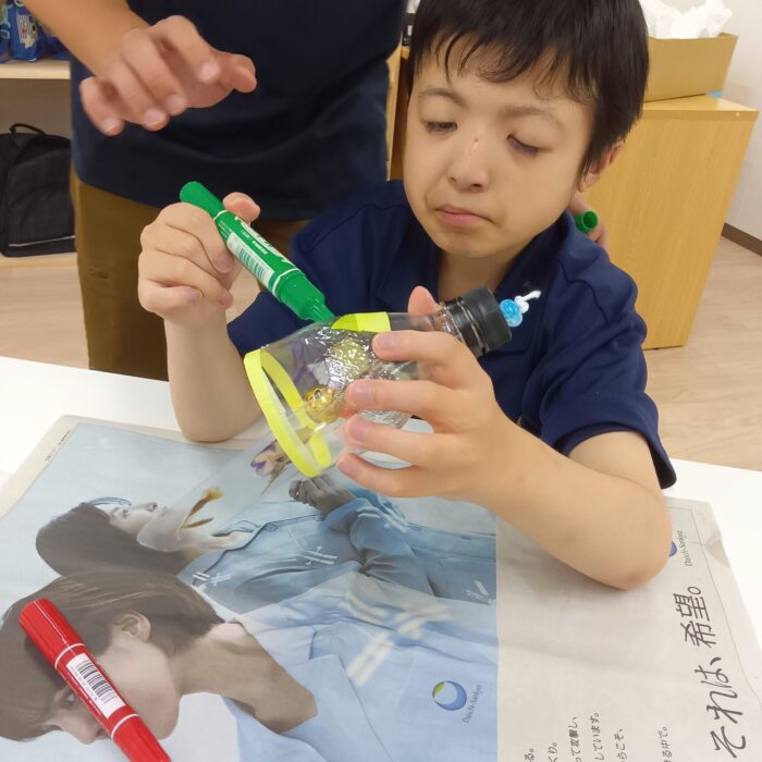 こんにちは、生活介護まはろ桜です♩ 今日は、手作り風鈴を工作で行いました。…
