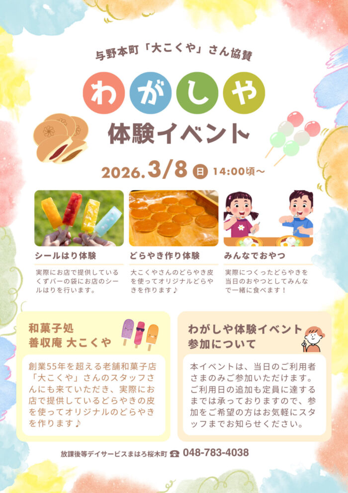 【桜】【桜木町】和菓子屋体験イベントのお知らせ